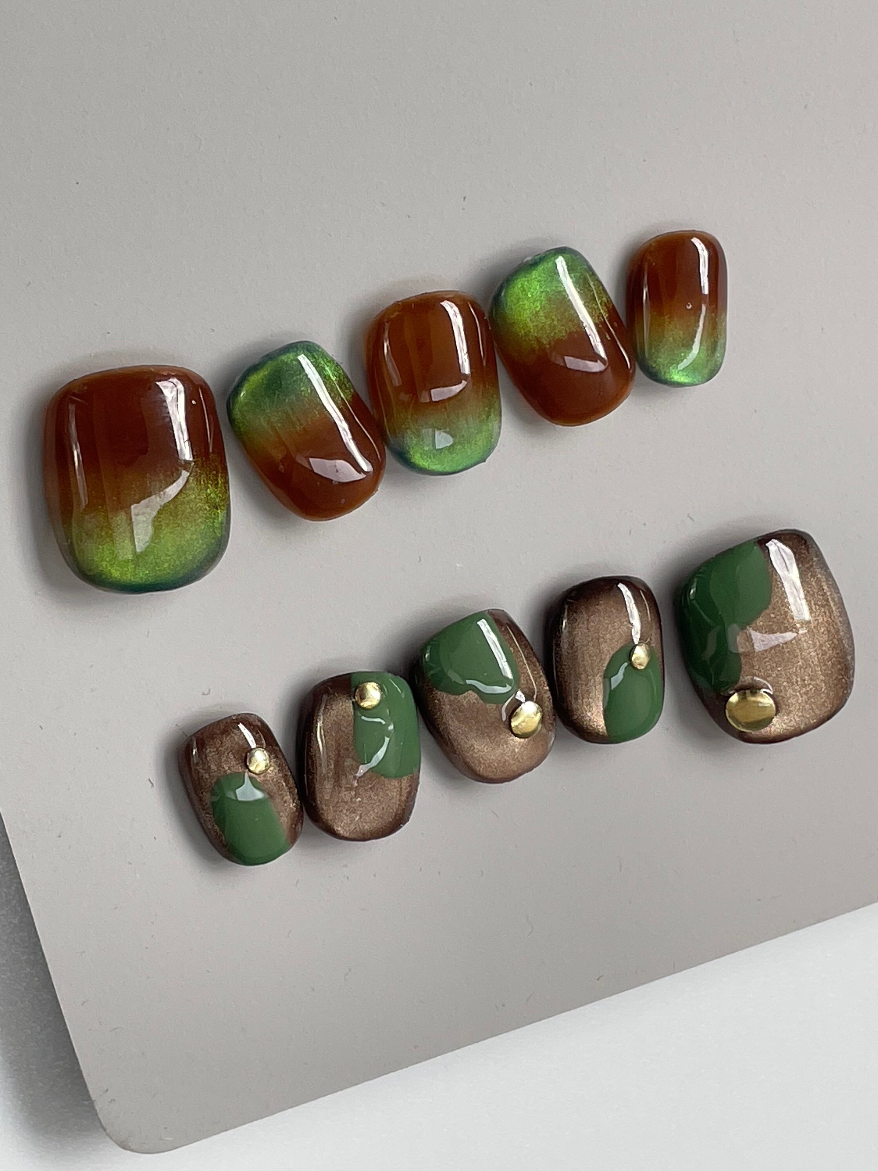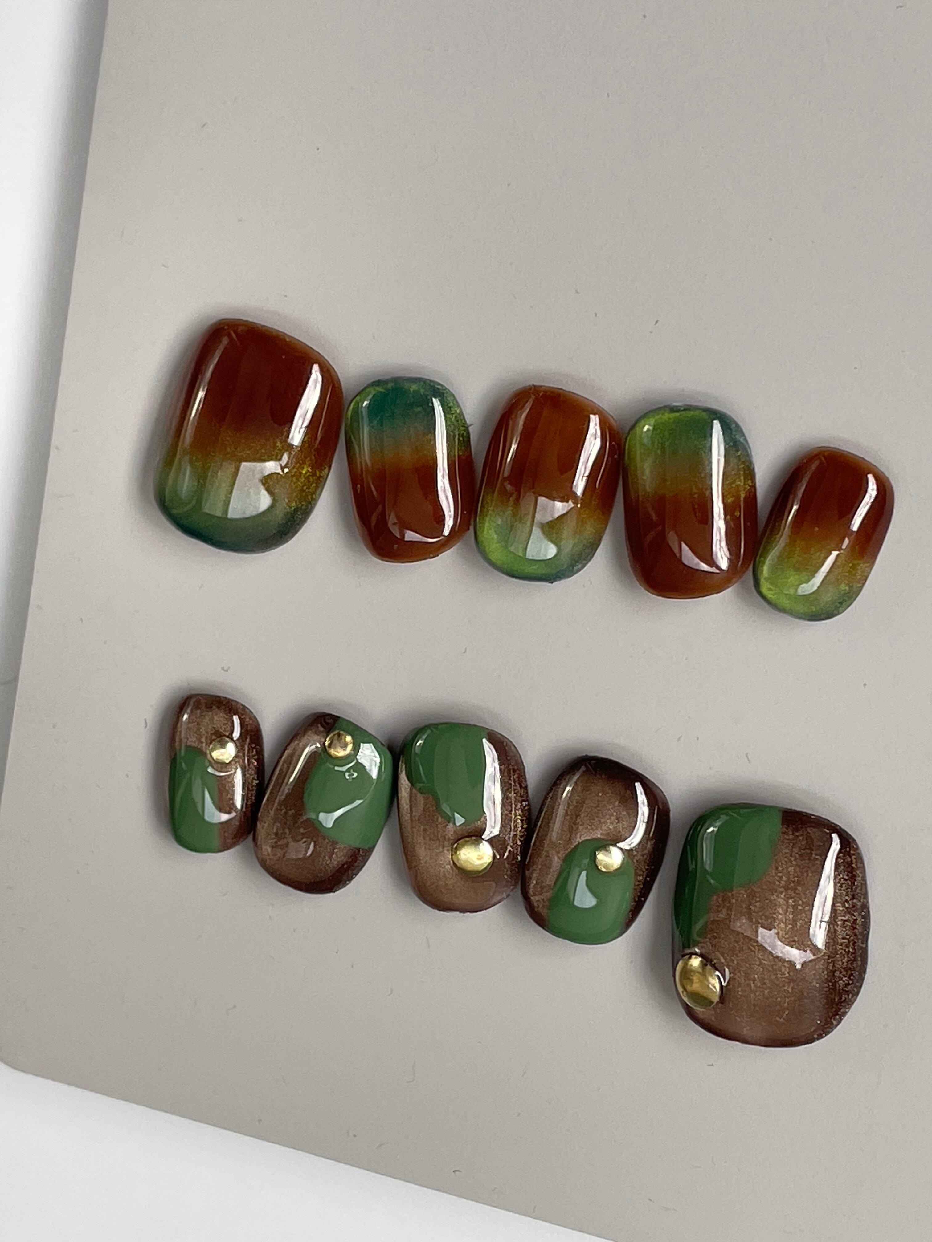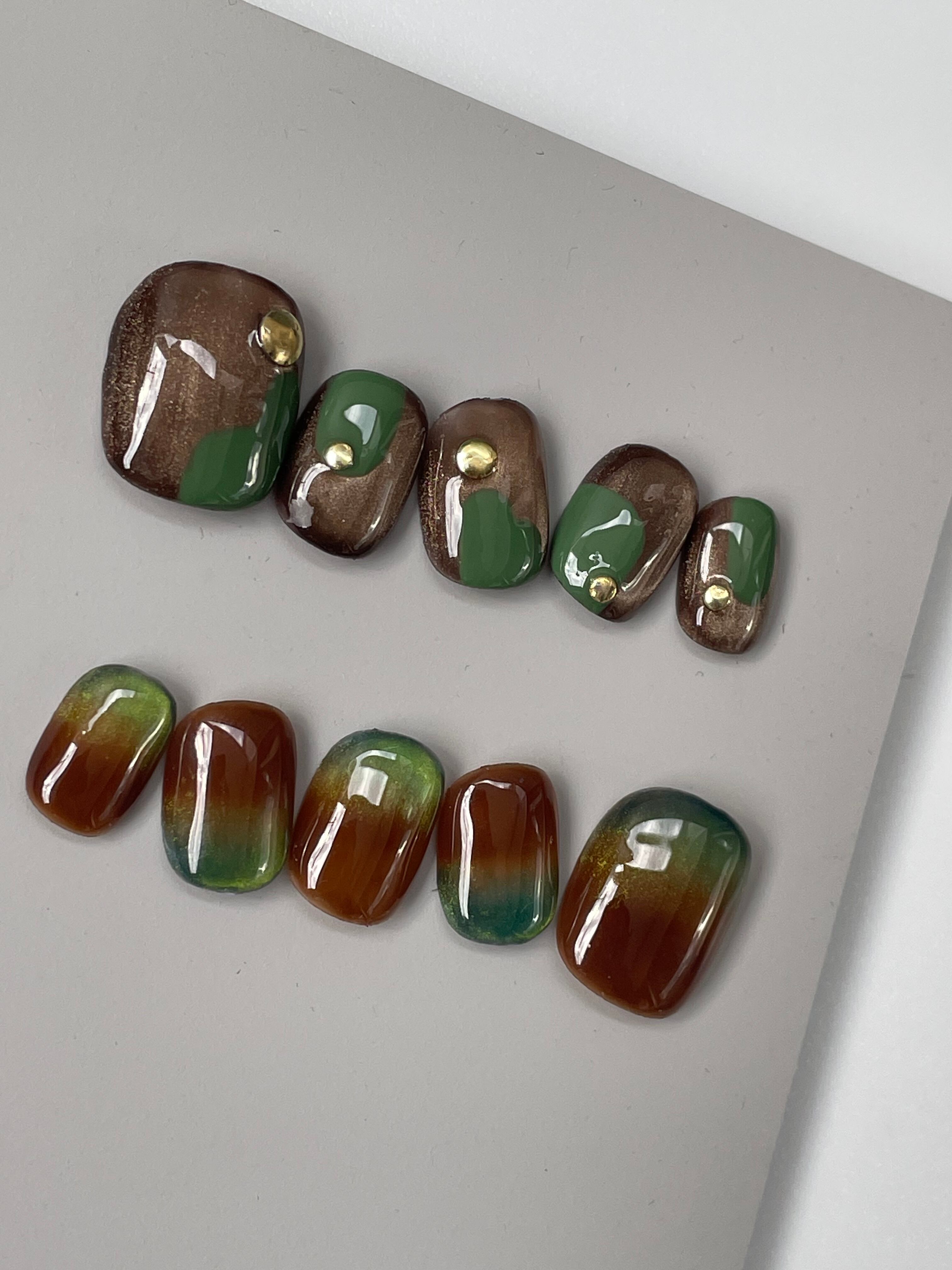 nuance・106 . Forest Amber(フォレストアンバー)グリーン×ブラウン ニュアンス /大人ネイルチップ/ブラウン系/グラデーション/マグネット/おしゃれ/大人女子