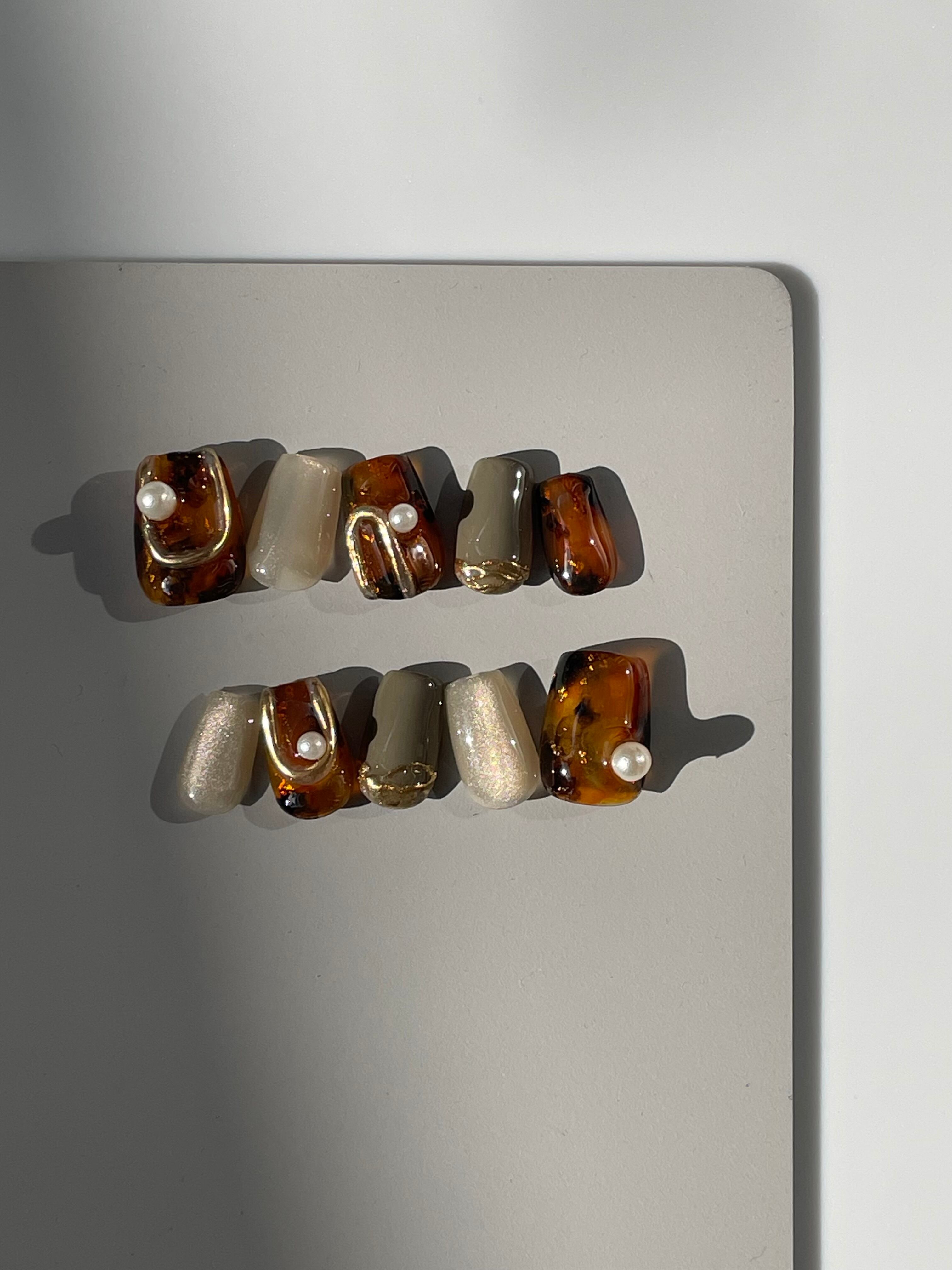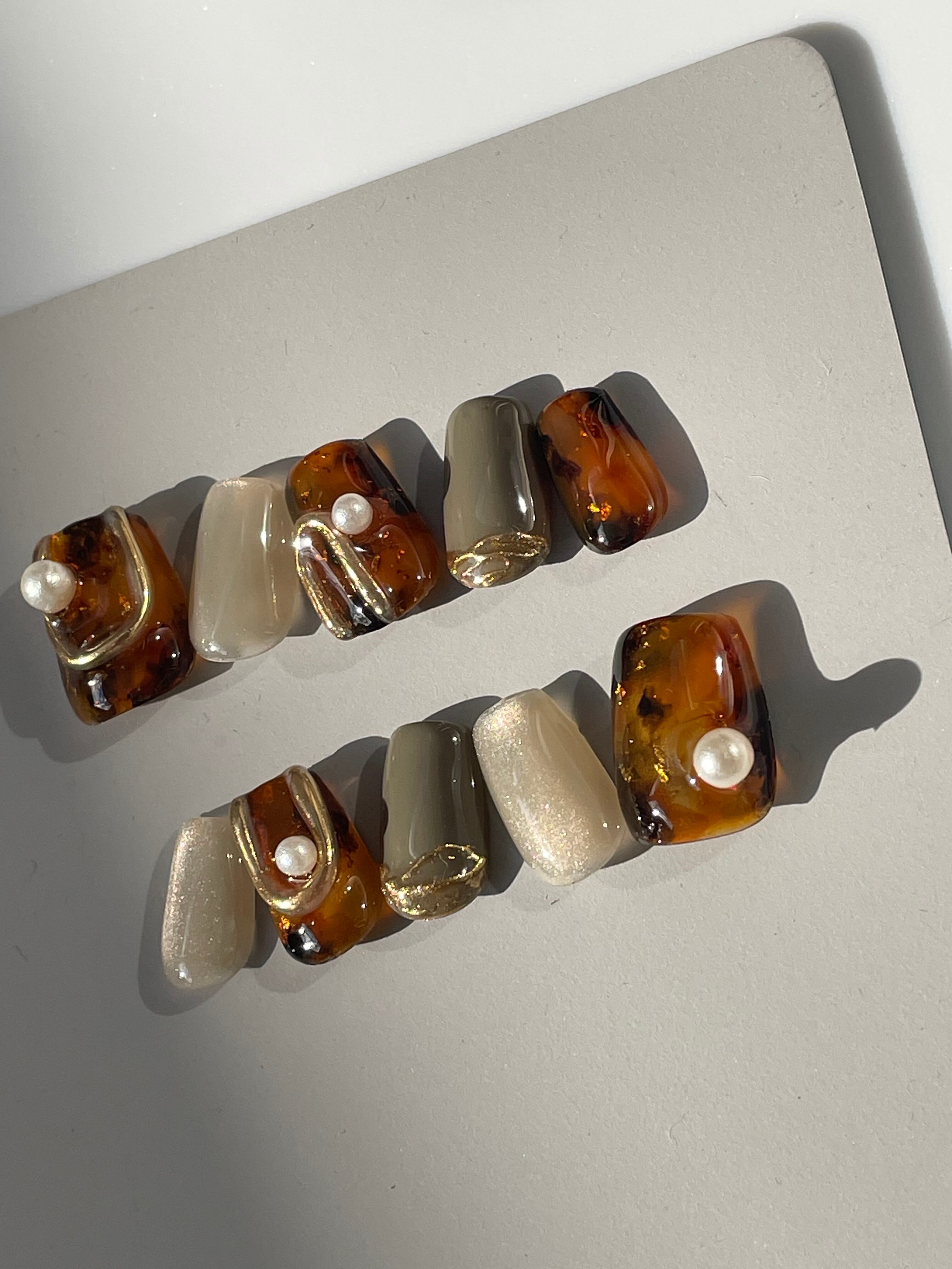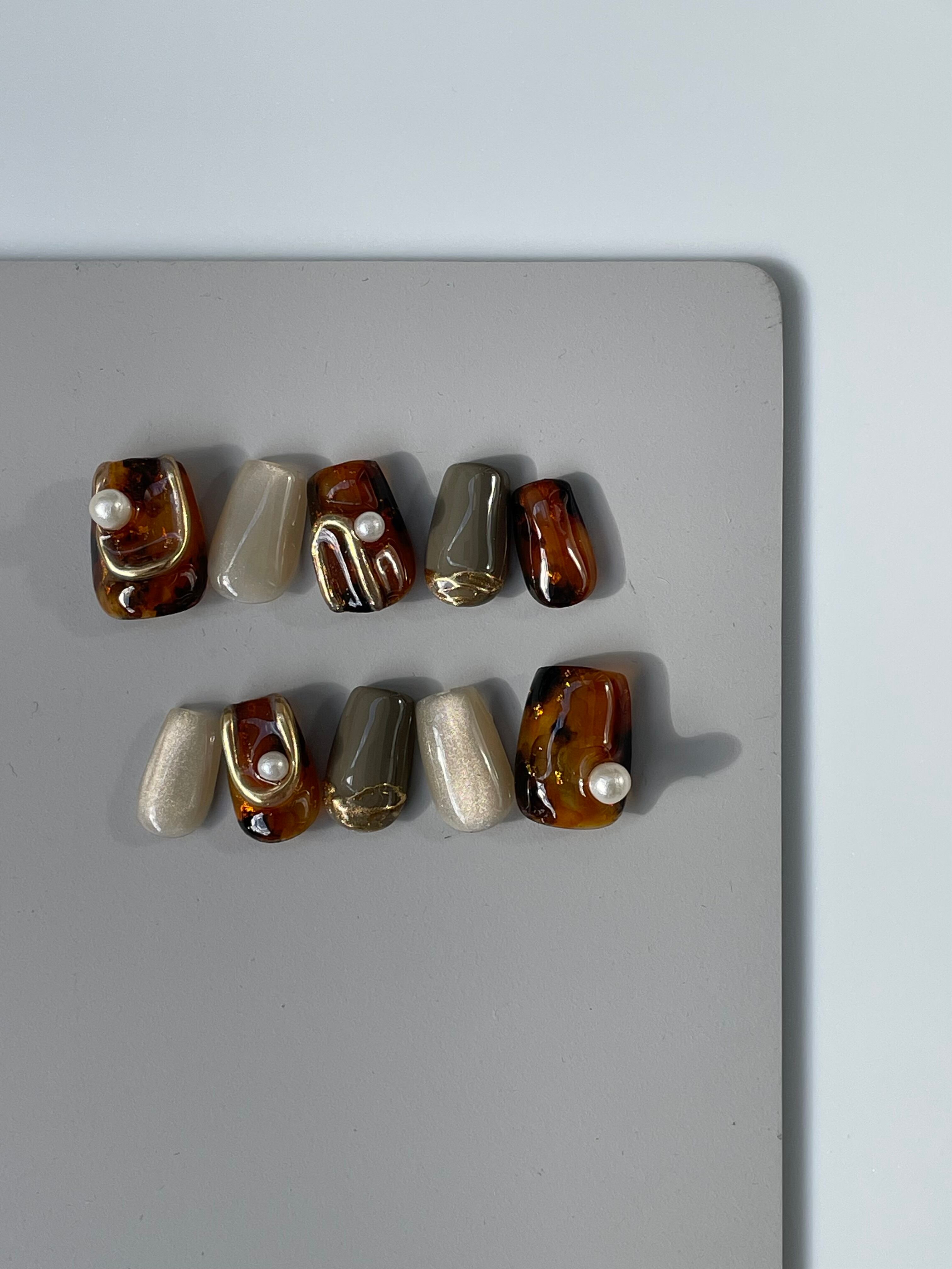 classic・302 べっ甲ネイル/アクセサリーネイル /マグネット/大人ネイル/ブラウン/カーキ/ホワイト