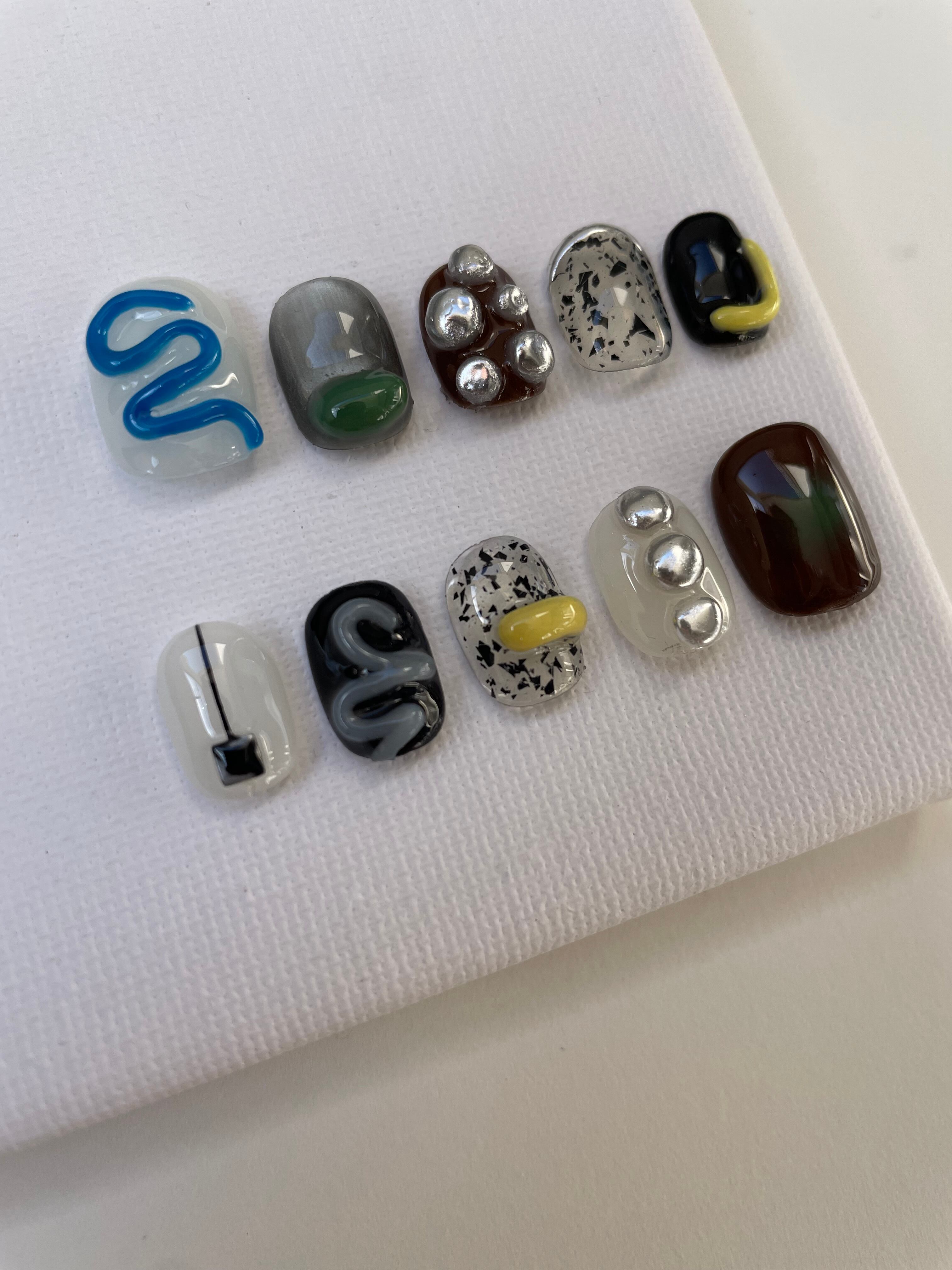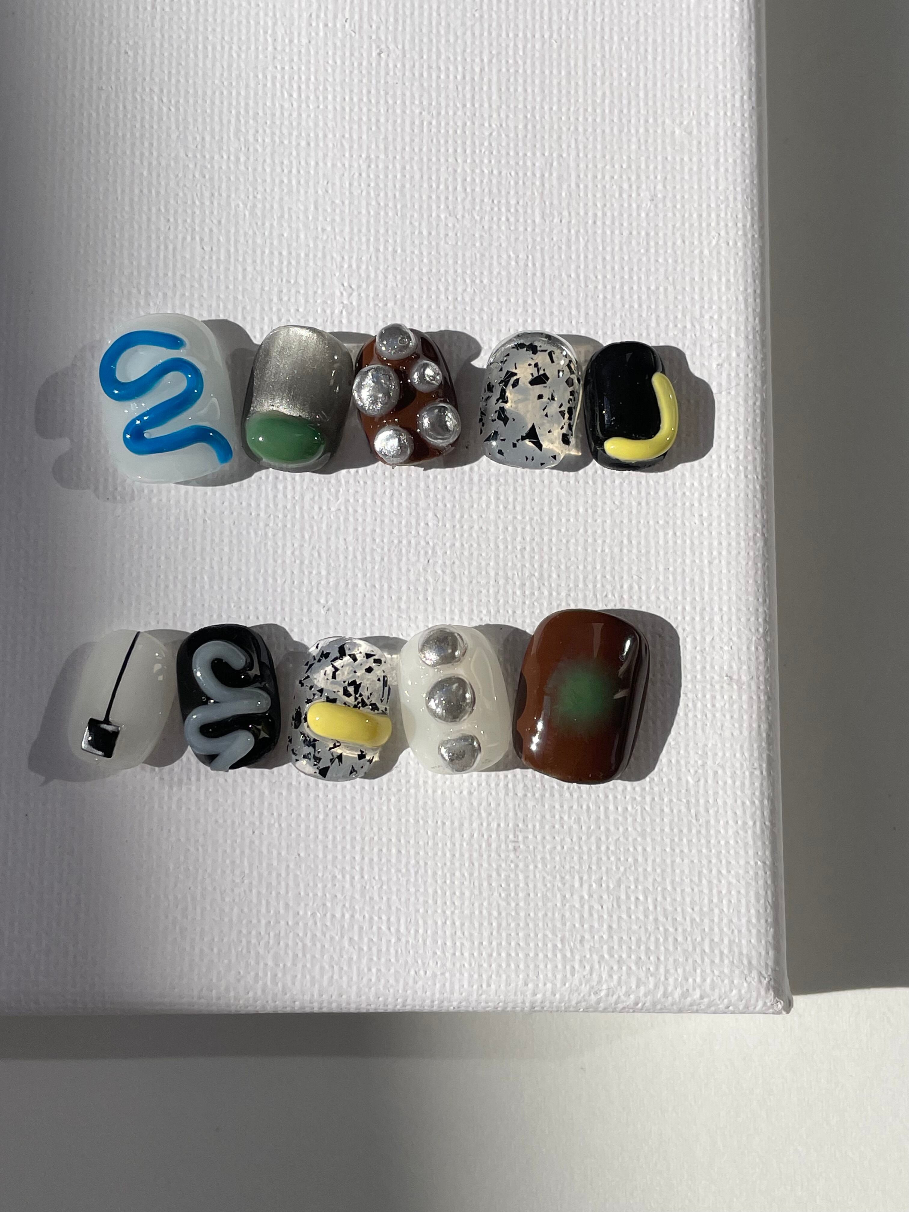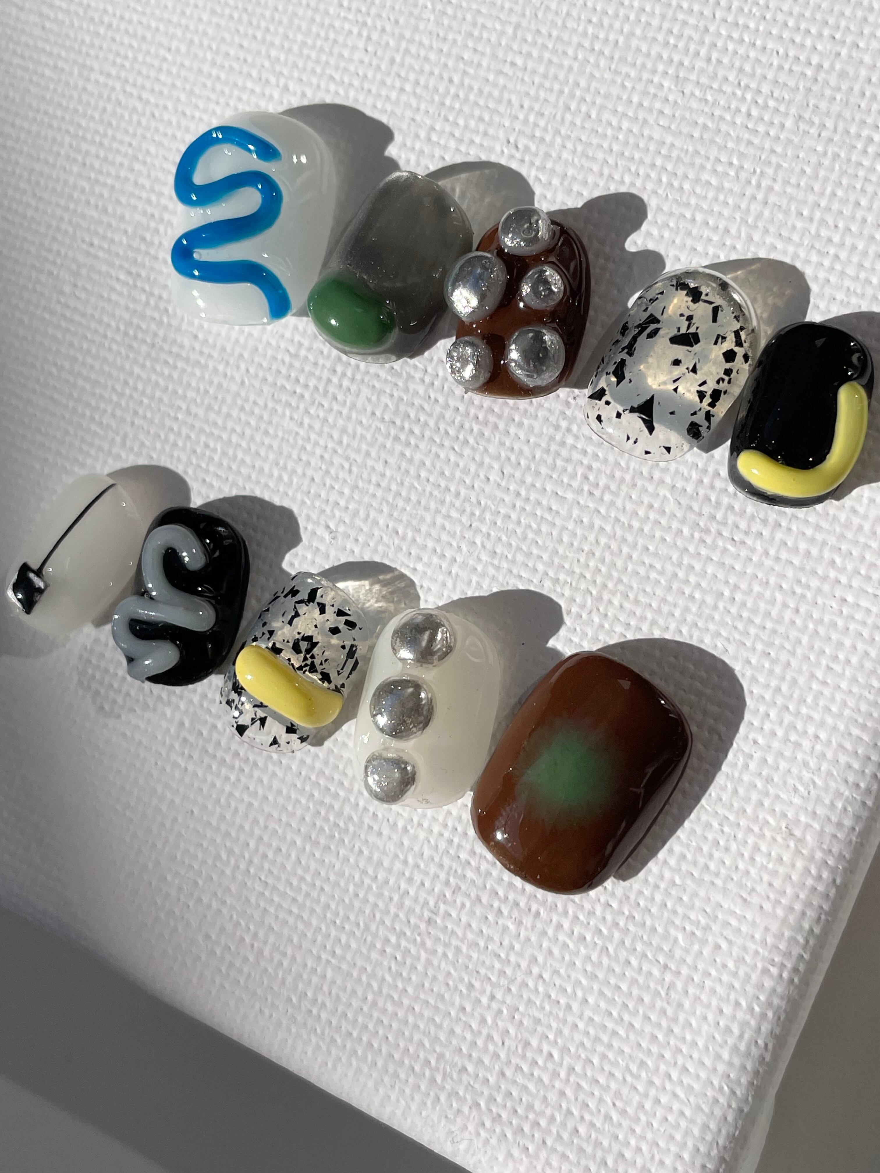 ・ネイルチップは1つ1つハンドメイドの為、色彩やニュアンスが個々で異なります。サイズや長さによってバランスを見ていい仕上がりになるように替えられるのもハンドメイドの魅力ではありますのでお楽しみいただけたらと思います。お写真との多少のちがいはご了承くださいませ。