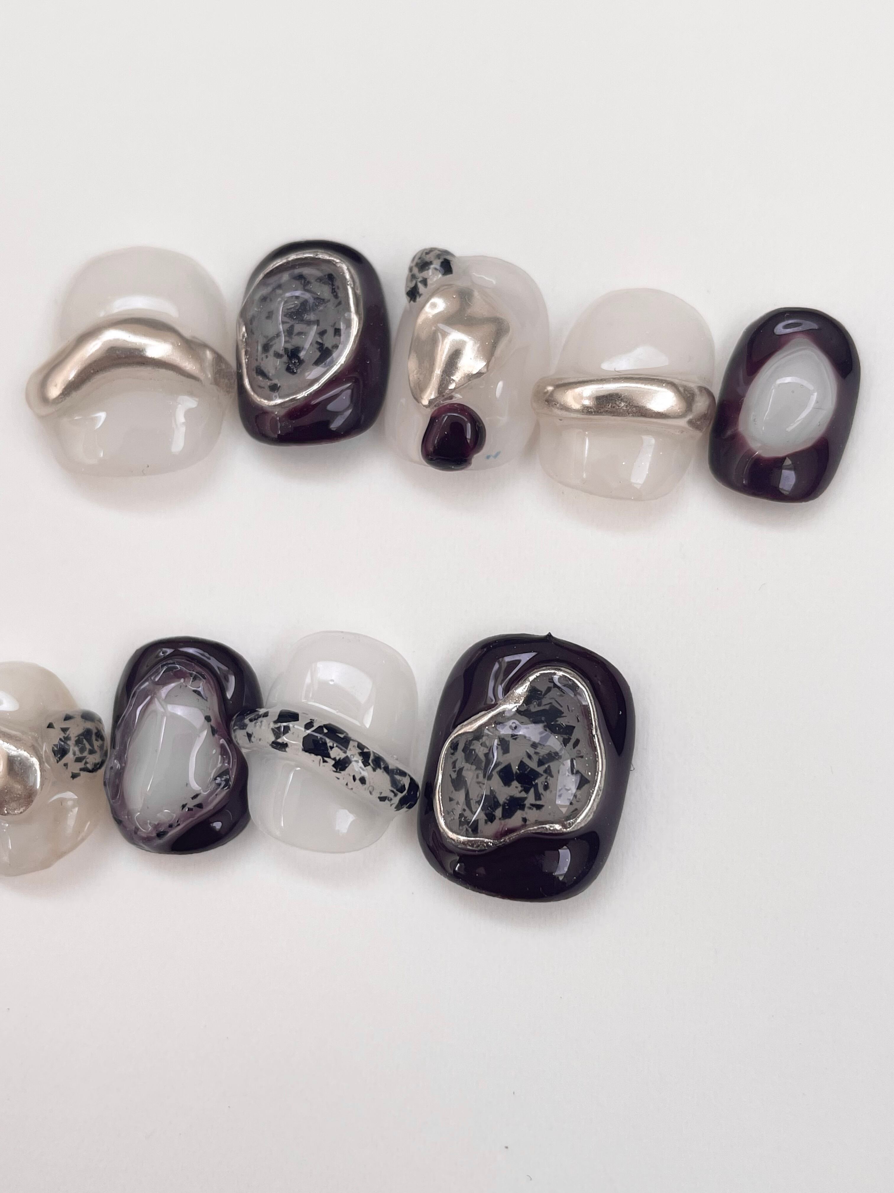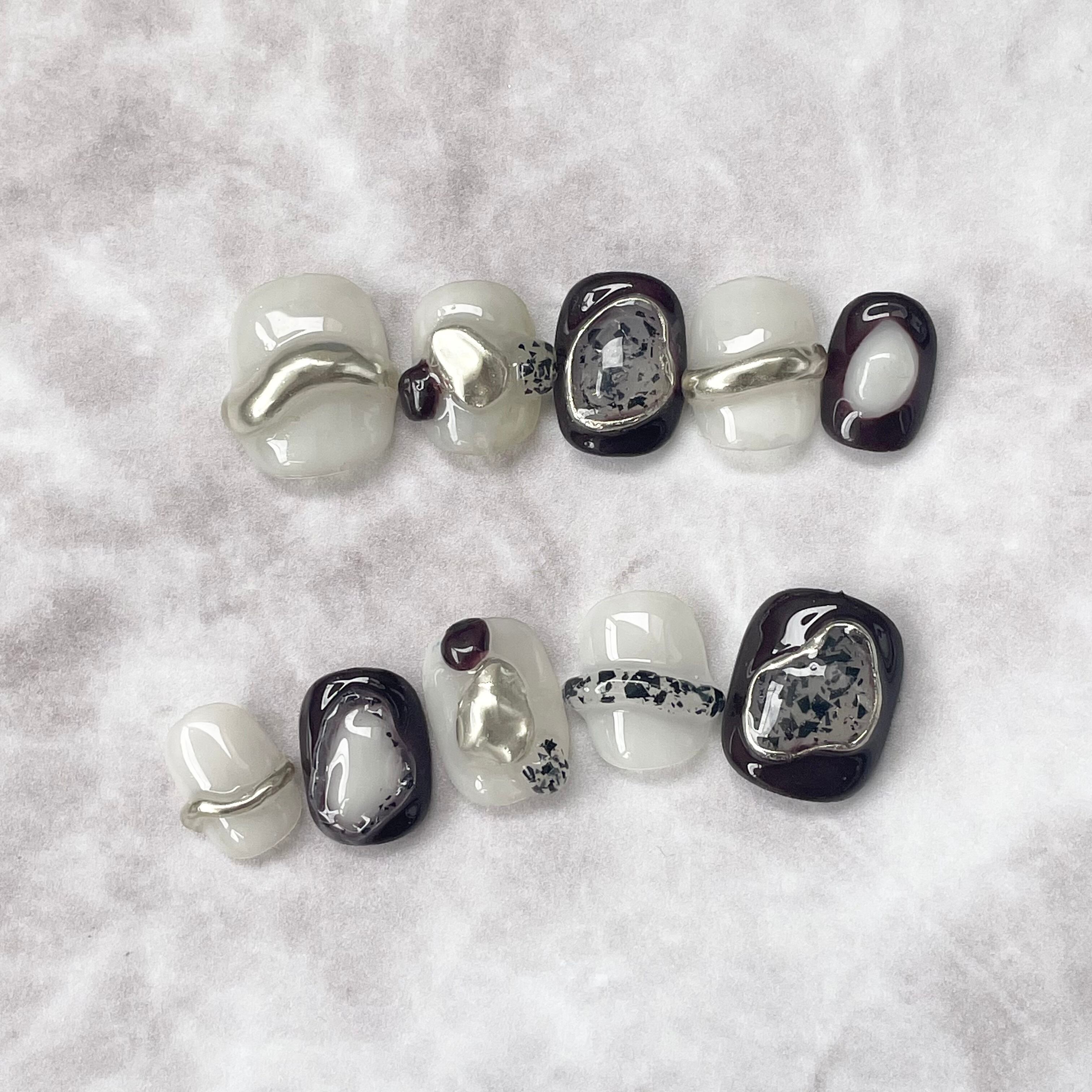 ・ネイルチップは1つ1つハンドメイドの為、色彩やニュアンスが個々で異なります。サイズや長さによってバランスを見ていい仕上がりになるように替えられるのもハンドメイドの魅力ではありますのでお楽しみいただけたらと思います。お写真との多少のちがいはご了承くださいませ。