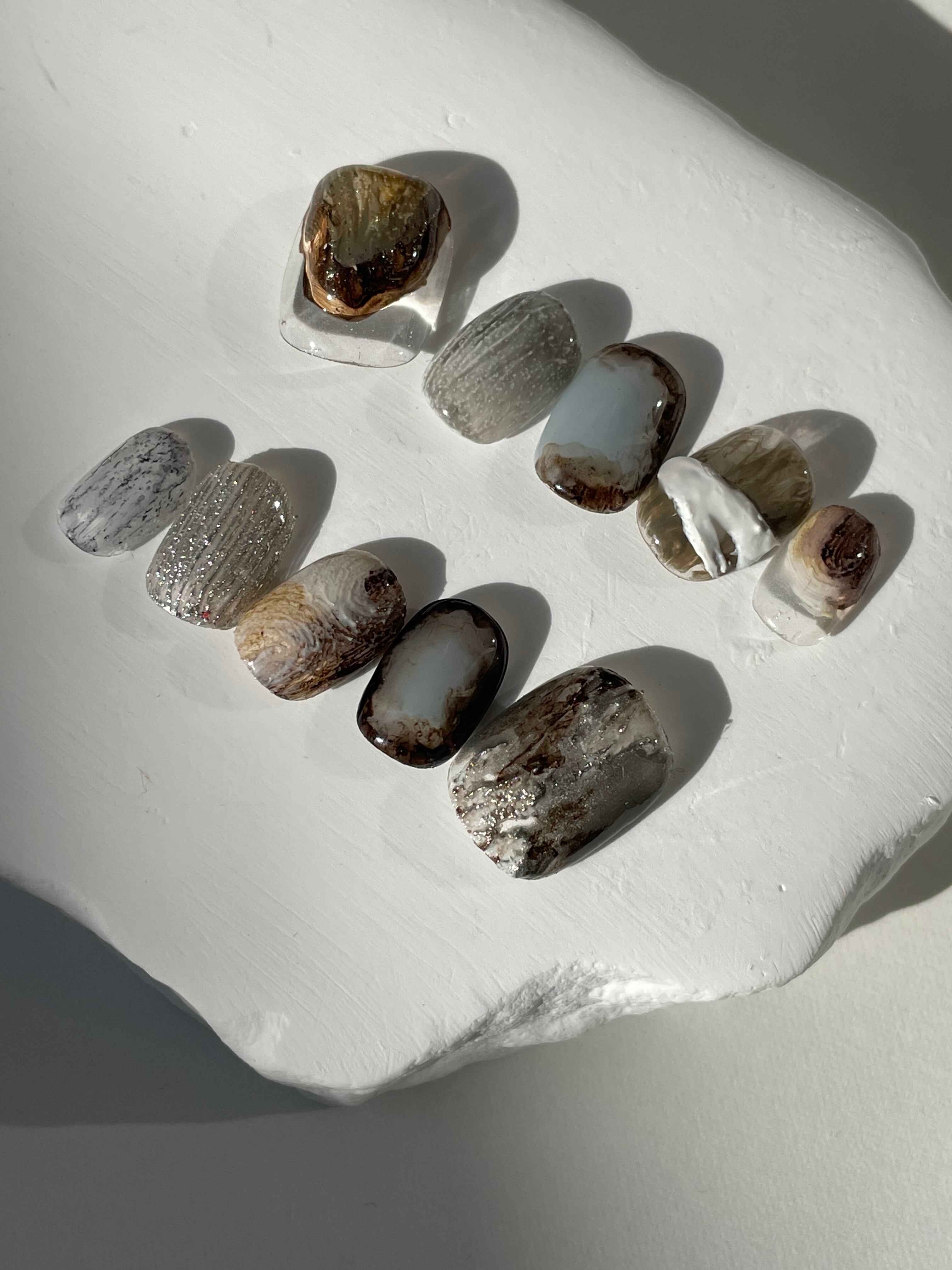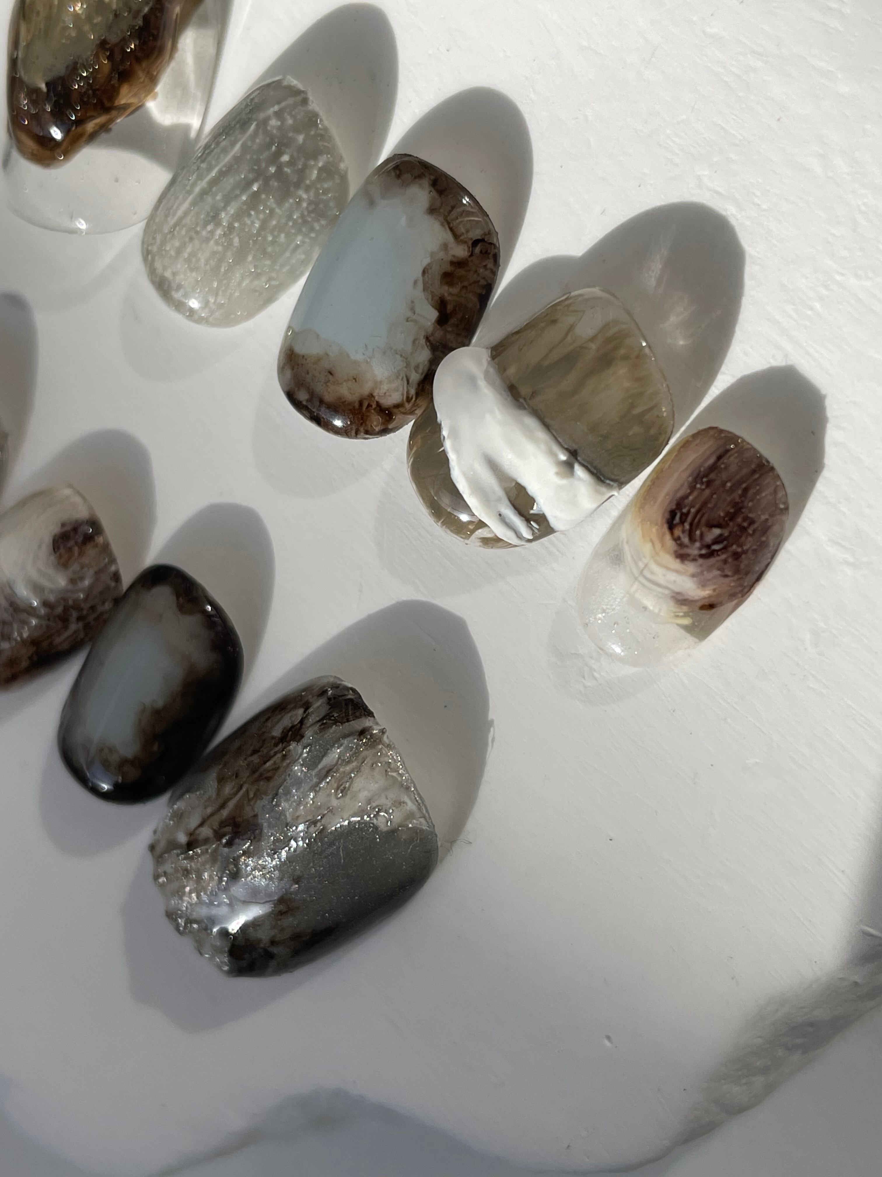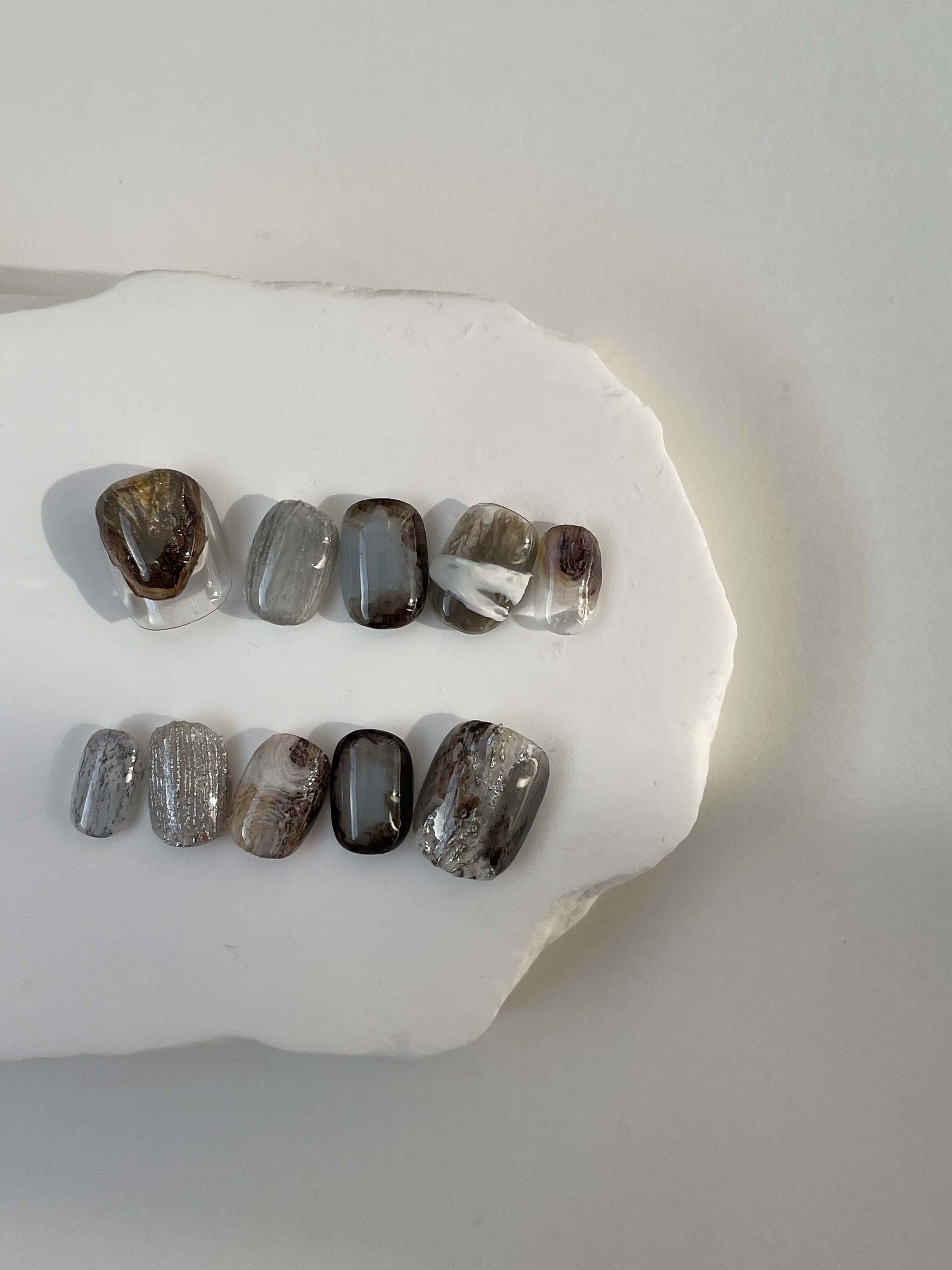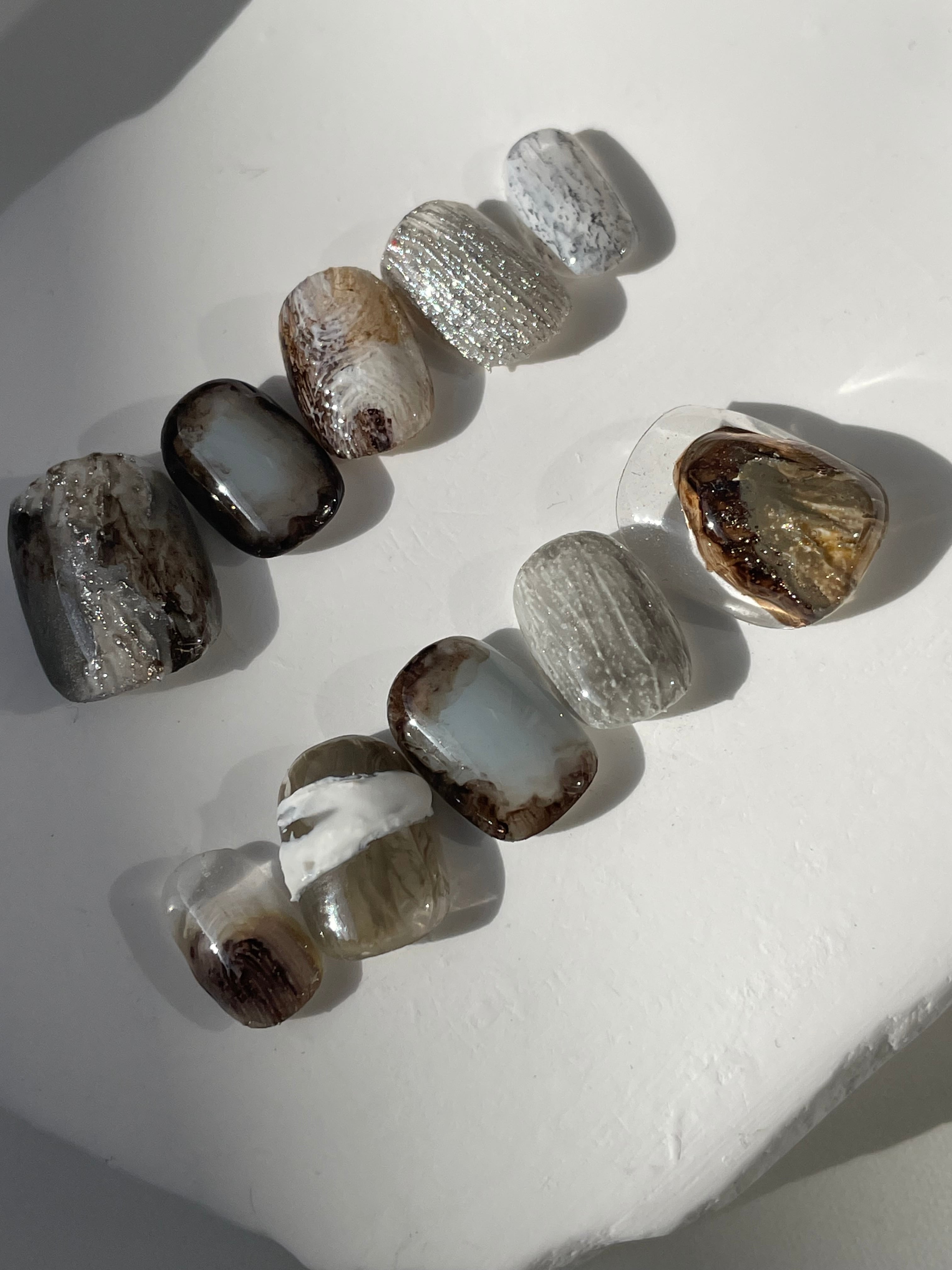 nuance・103 Earth Vei(アースヴェール) 鉱石/ネイルチップ /サイズオーダー/大人ネイル/個性派/ニュアンス/くすみブルー/ブラウン/