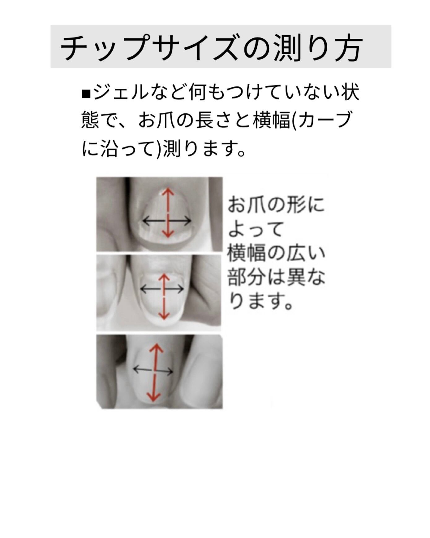 こちらはサイズをぴったりに合わせていただく為の計測用チップのページです。